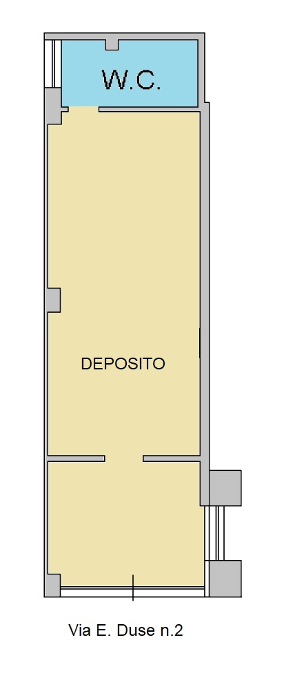 Via Duse n.2 deposito di mq 46, composto da ingresso, vano unico e bagno. Ottime condizioni interne