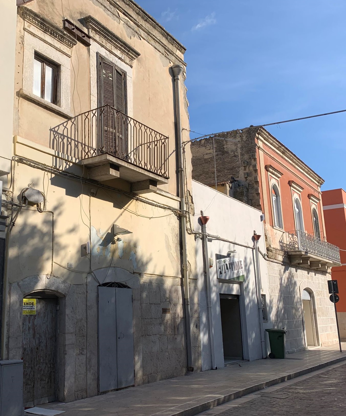 Zona Centro – Soluzione Indipendente – Piano primo composto da: tre ampi vani, bagno, veranda e balcone. Area sovrastante. piano terra uso commerciale composto da un vano unico con bagno.