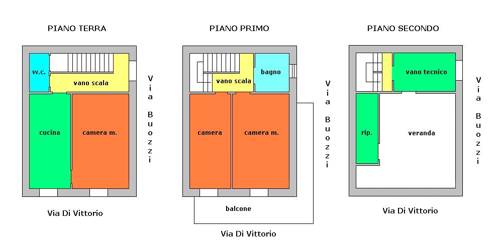 Soluzione indipendente Via Di Vittorio / Via Buoni, piano terra di mq 70 composto da: cucina, camera bagno e vano scala. piano primo di mq 70 composto da: due camere, bagno e balcone. Terrazzo sovrastante.