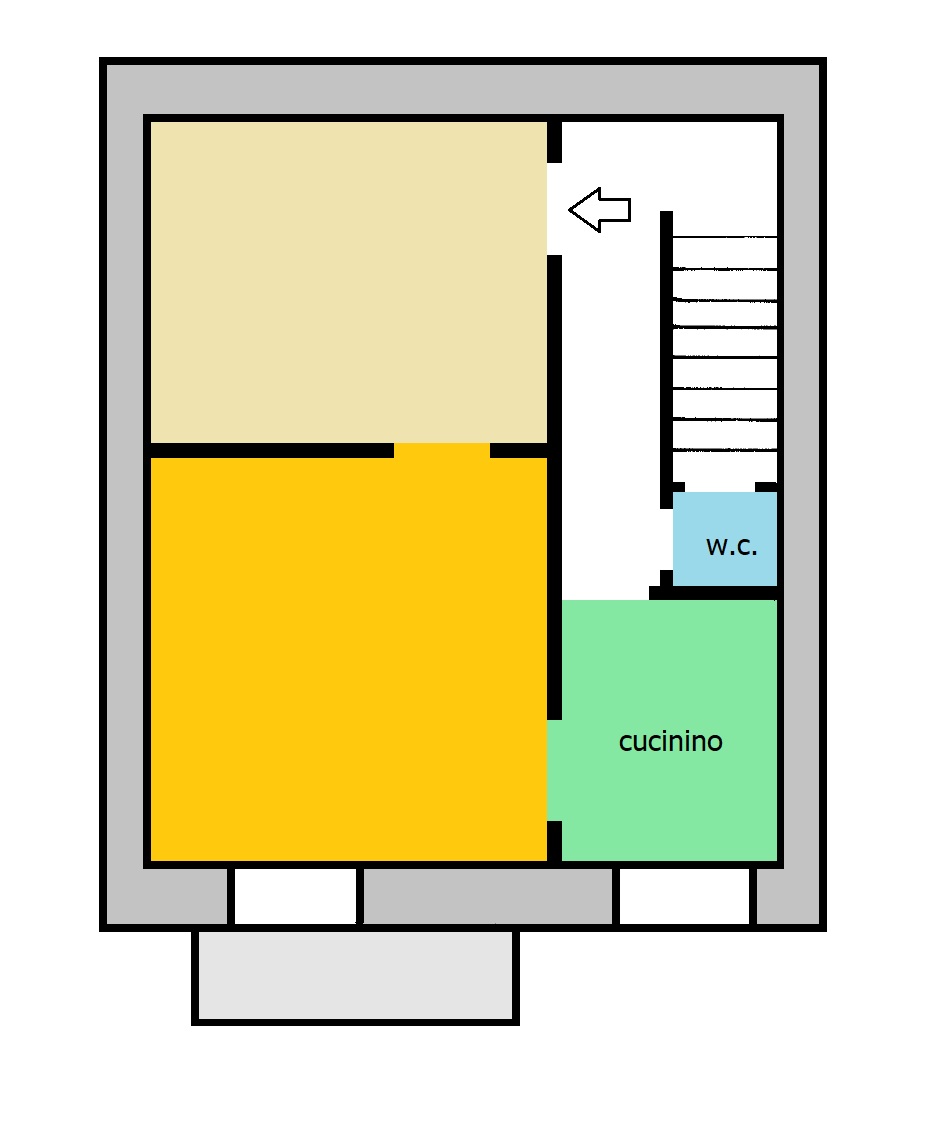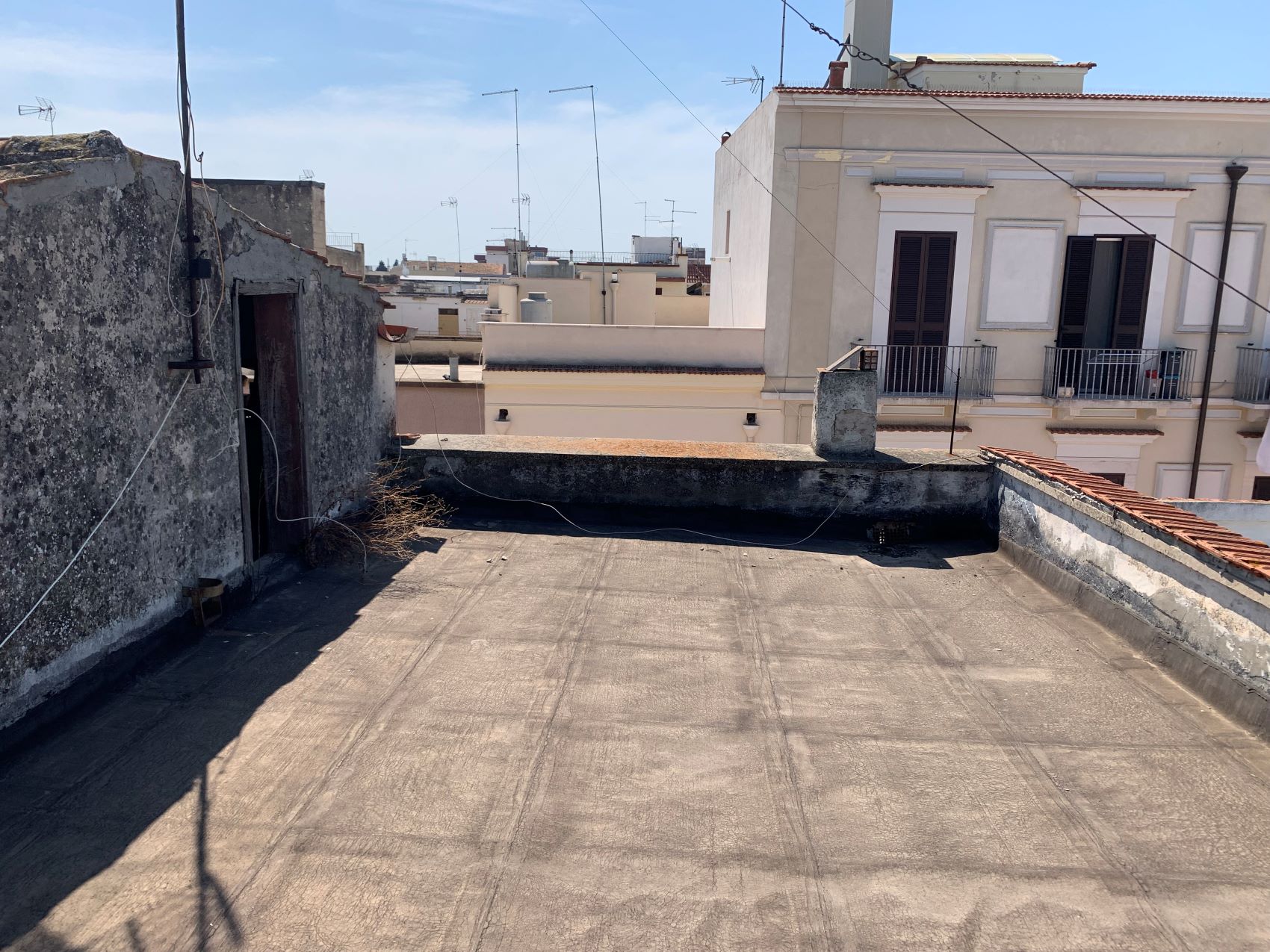 Zona centrale – Via Roma – soluzione indipendente di mq 50 posta al piano primo composta da: due vani, cucinino e bagno oltre terrazzo sovrastante con vano tecnico. Da ristrutturare.