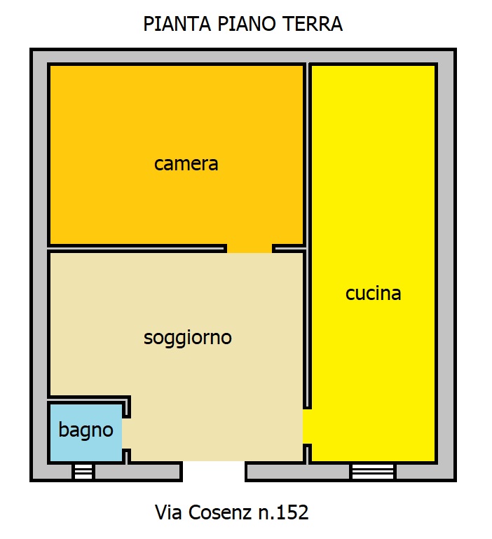 Soluzione indipendente posta al piano terra di mq 60 ca. composta da: soggiorno, cucina, camera e bagno. Da ristrutturare